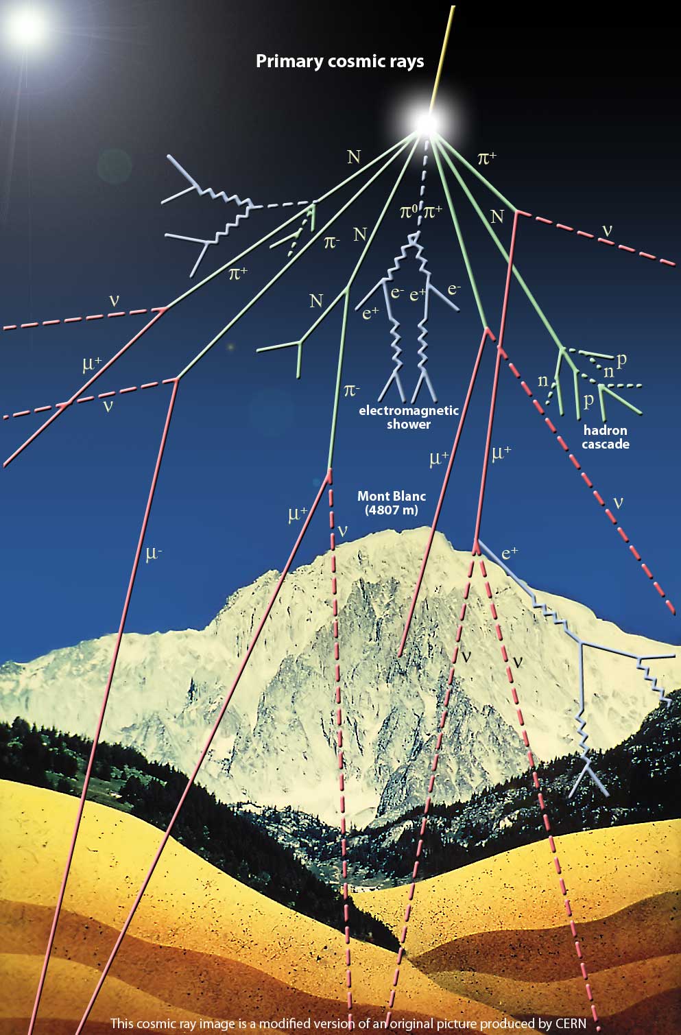 "Les muons remontants sont probablement créés dans la partie d'atmosphère située sous le niveau du télescope. On pense que dans le cas de gerbes cosmiques de haute énergie, la cascade hadronique (des protons) générée lors de la collision initiale en altitude descend jusqu'au niveau de le mer et est capable de produire des pions et des kaons qui, à leur tour, produisent des muons en se désintégrant. Ce phénomène n'avait jamais été décrit jusqu'à notre découverte sur les flancs de la Soufrière."